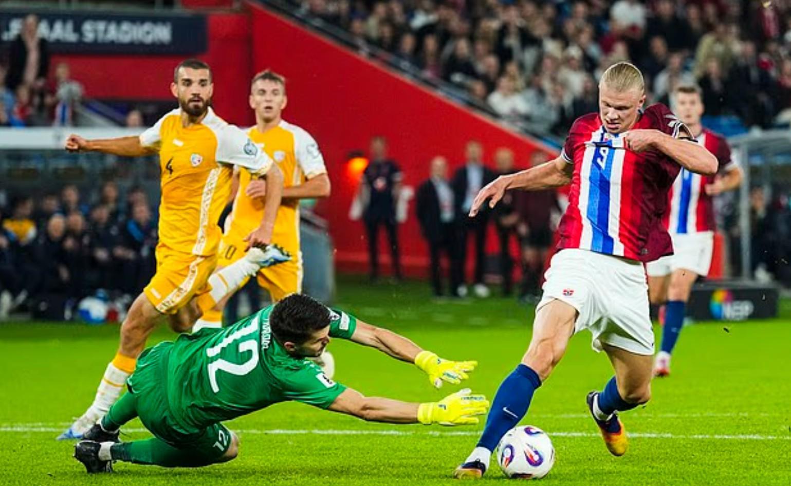 摩尔多瓦门将阿夫拉姆表示:“他(哈兰德)说这不是我的错,他为每次进球后冲过来表示歉意。他说他们必须继续前进,因为净胜球很重要。”