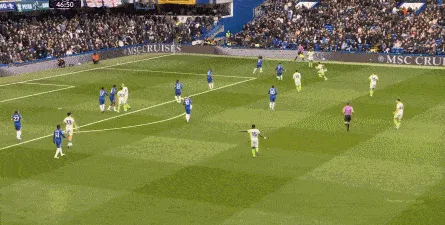 这一点确实没问题,但在落位阶段,切尔西出现了问题,罗塞尼尔选择将若昂-佩德罗和两个边锋摆在相对靠前的位置,这一点当然有利于球权夺回之后打反击,但这意味着帕尔默的位置将会相对靠后,也会因此背上清晰的防守职责: