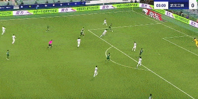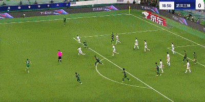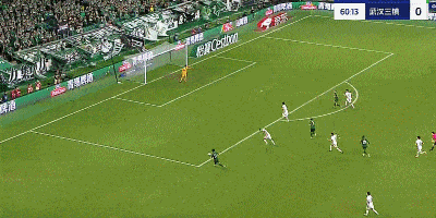 第17分钟,国安错失良机,张玉宁近距离头球攻门偏出底线。