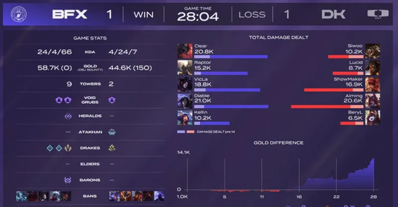 点击为双方选手评分虎扑09月04日讯 【GAME2】BFX蓝色方、DK红色方